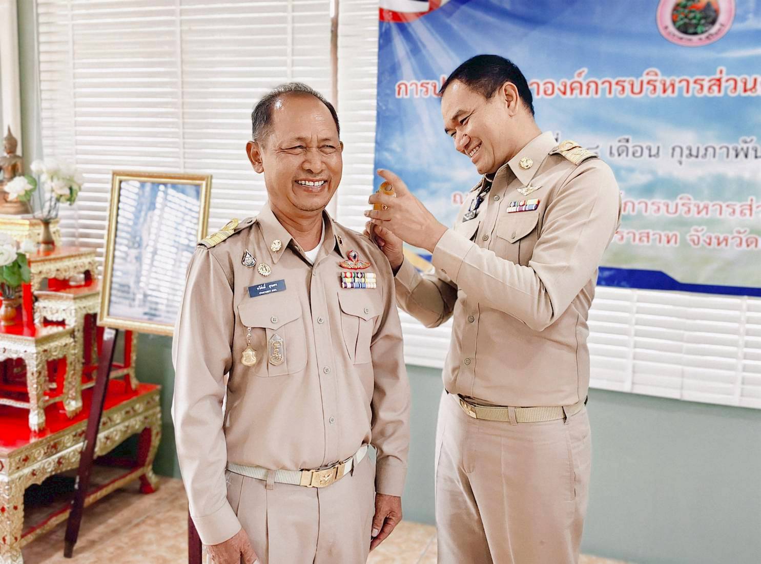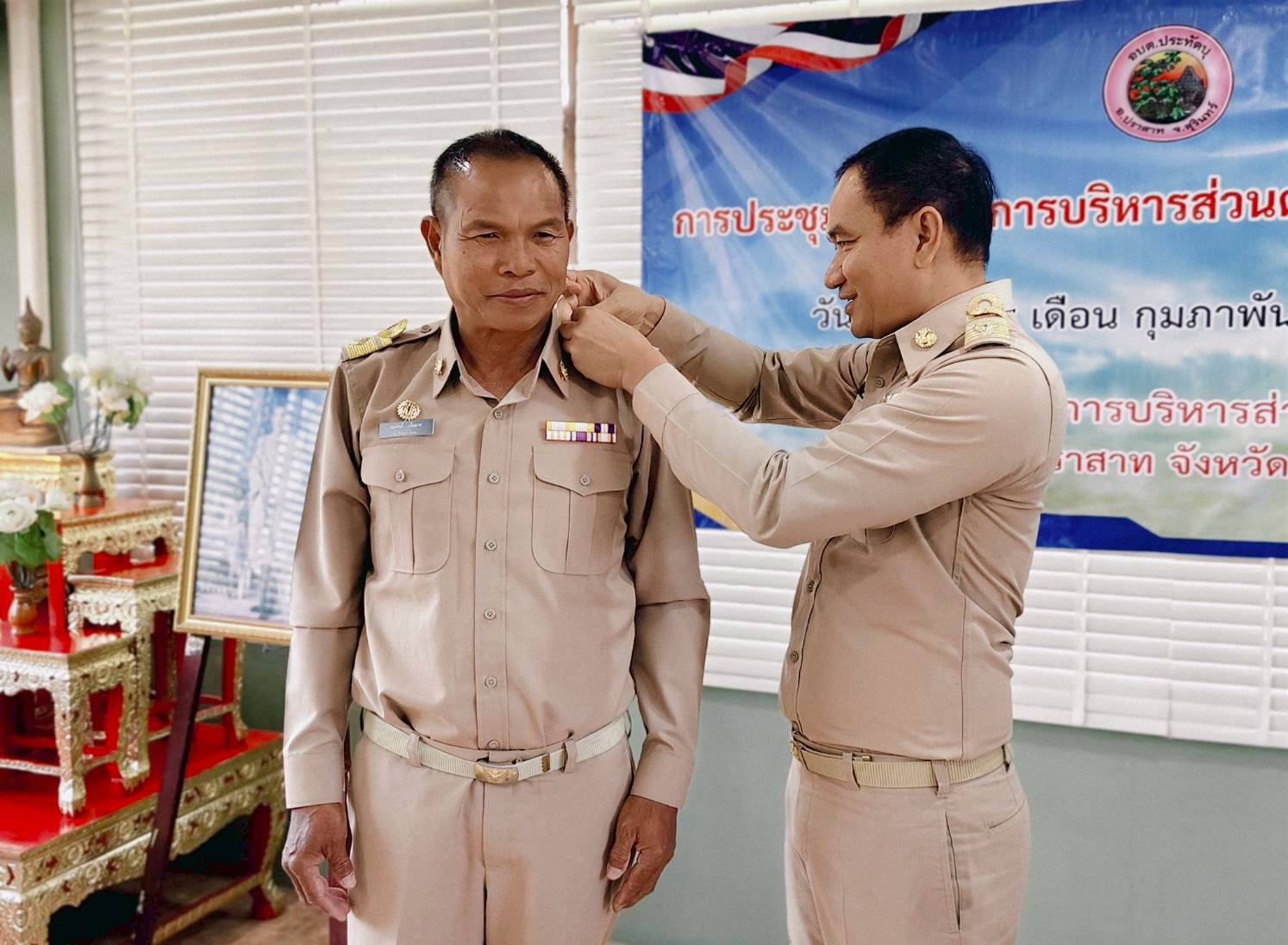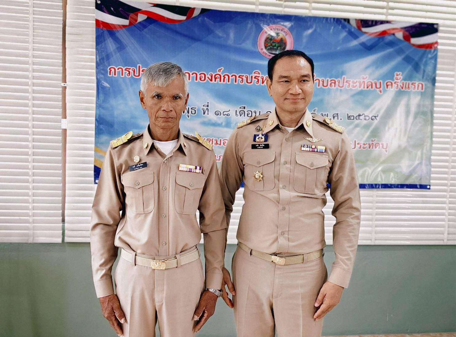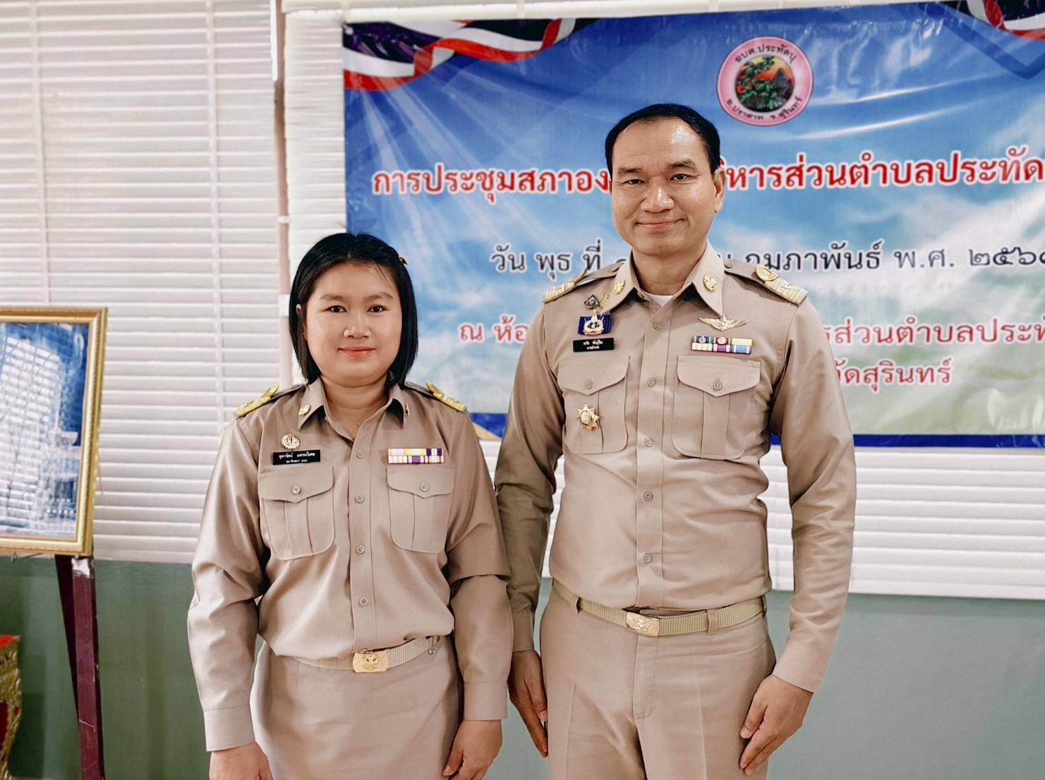 นายอำเภอปราสาท แสดงความยินดีและประดับอินทนูให้แก่นายกอบต.และสมาชิกสภาอบต.ประทัดบุ ในการประชุมสภาฯ ครั้งแรก เมื่อวันที่ 18 กุมภาพันธ์ 2569 ณ ห้องประชุมสภาองค์การบริหารส่วนตำบลประทัดบุ