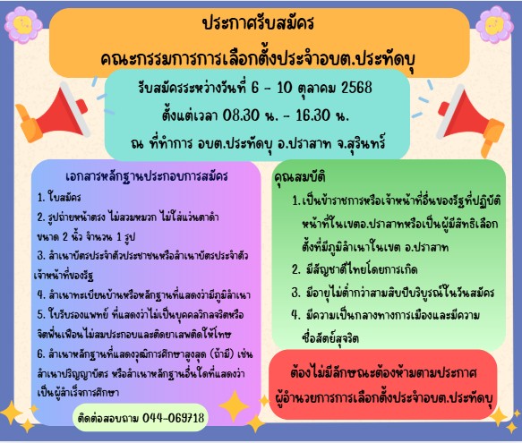 องค์การบริหารส่วนตำบลประทัดบุ อำเภอปราสาท จังหวัดสุรินทร์ : www.pratadbu.go.th