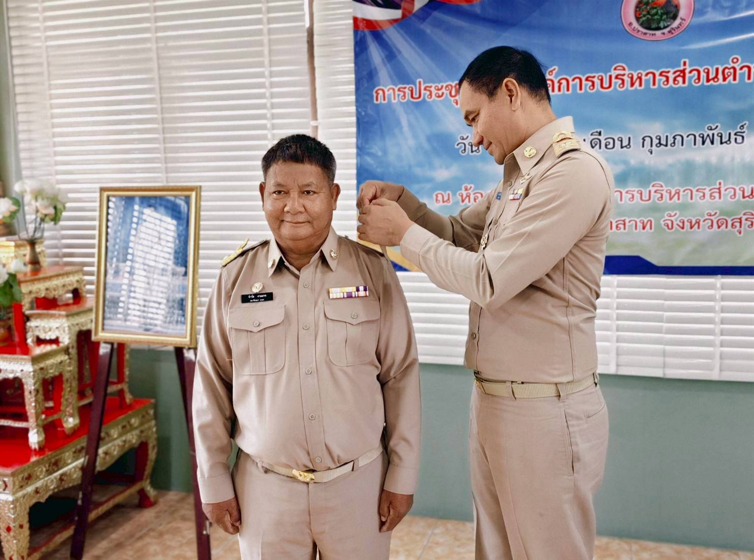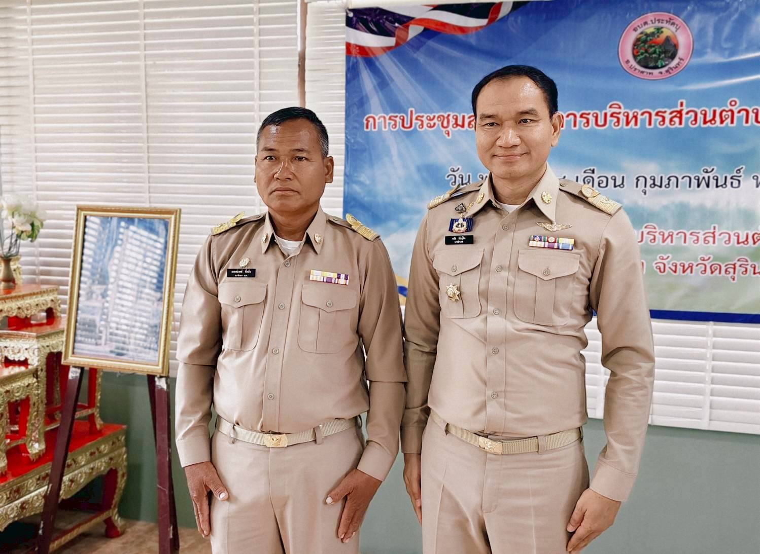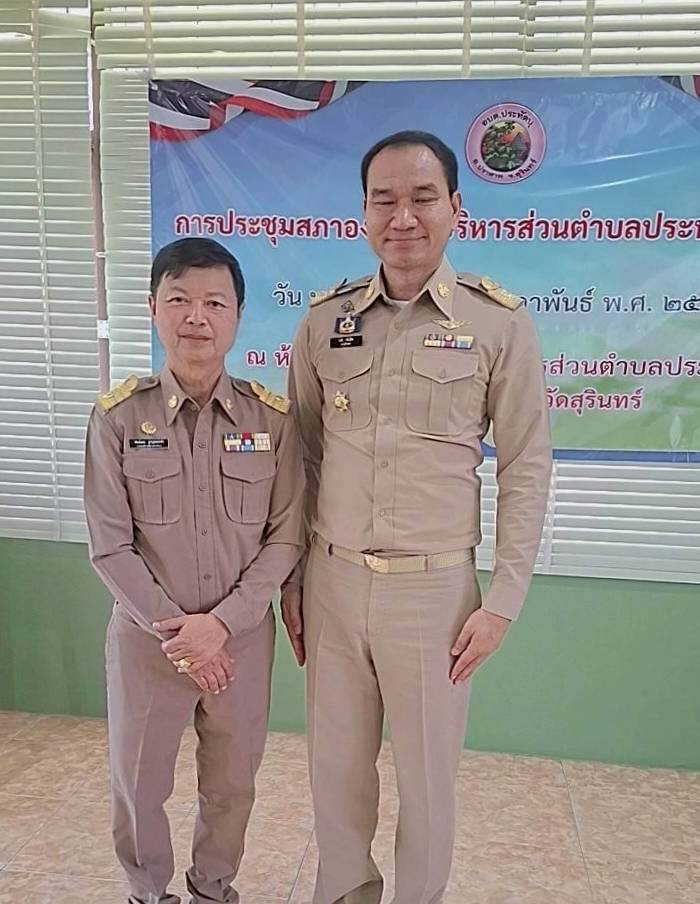 นายอำเภอปราสาท แสดงความยินดีและประดับอินทนูให้แก่นายกอบต.และสมาชิกสภาอบต.ประทัดบุ ในการประชุมสภาฯ ครั้งแรก เมื่อวันที่ 18 กุมภาพันธ์ 2569 ณ ห้องประชุมสภาองค์การบริหารส่วนตำบลประทัดบุ