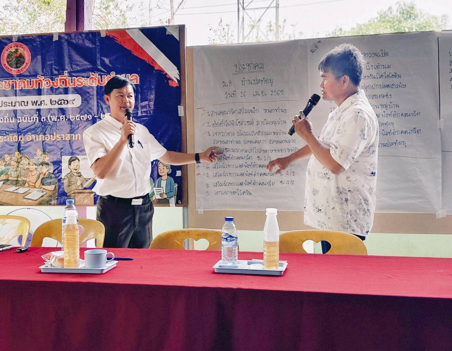 นายพันธ์เทพ ฐานุพงศ์ชรัช นายกองค์การบริหารส่วนตำบลประทัดบุ พร้อมด้วยคณะผู้บริหาร หัวหน้าส่วนราชการ และเจ้าหน้าที่ที่เกี่ยวข้อง ออกประชุมประชาคม เพื่อจัดทำแผนพัฒนาท้องถิ่น ฉบับที่ 3 (พ.ศ.2571-2575) ณ บ้านประทัดบุ อำเภอปราสาท จังหวัดสุรินทร์