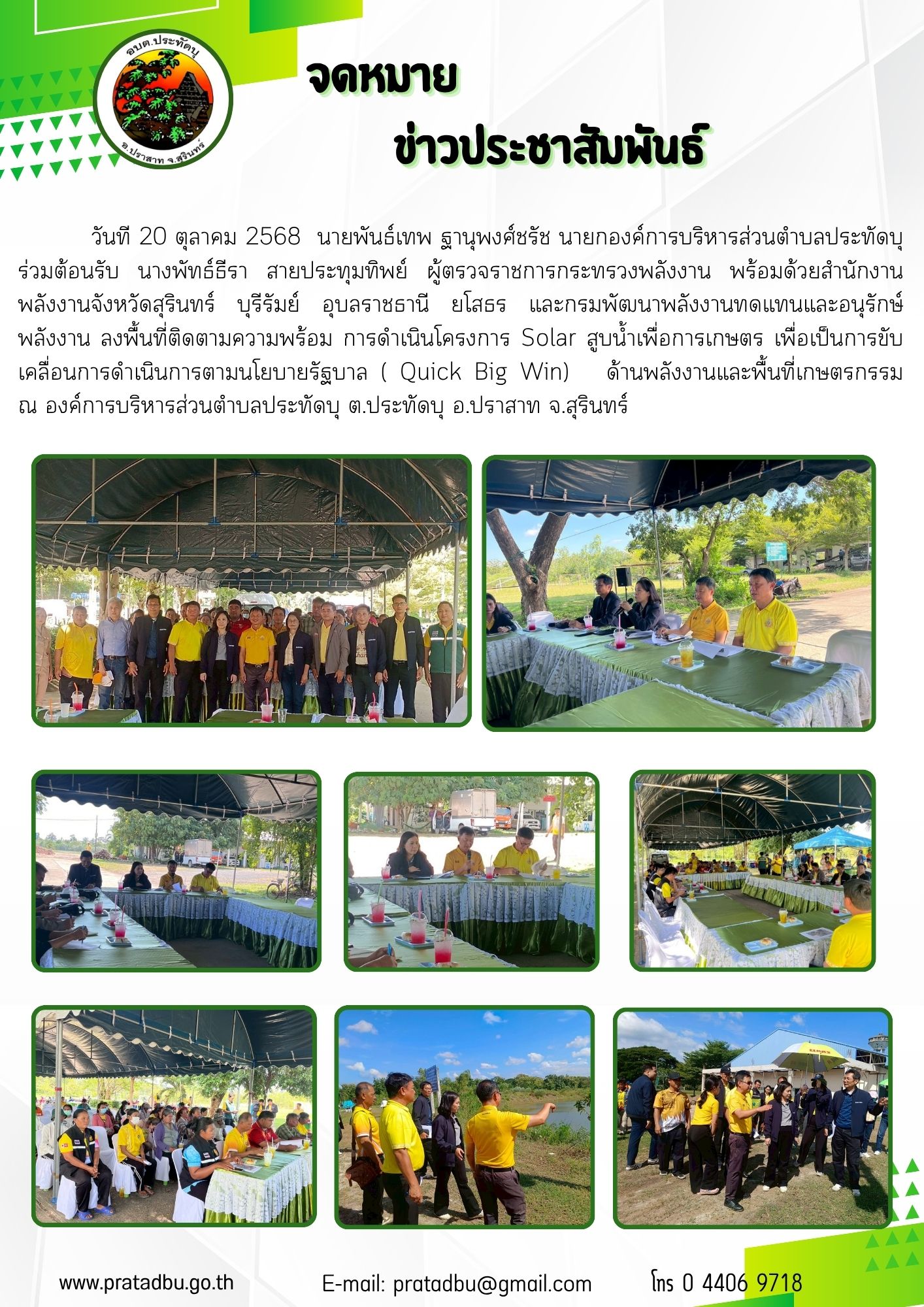 ลงพื้นที่ติดตามความพร้อมการดำเนินโครงการ Solar สูบน้ำเพื่อการเกษตร |