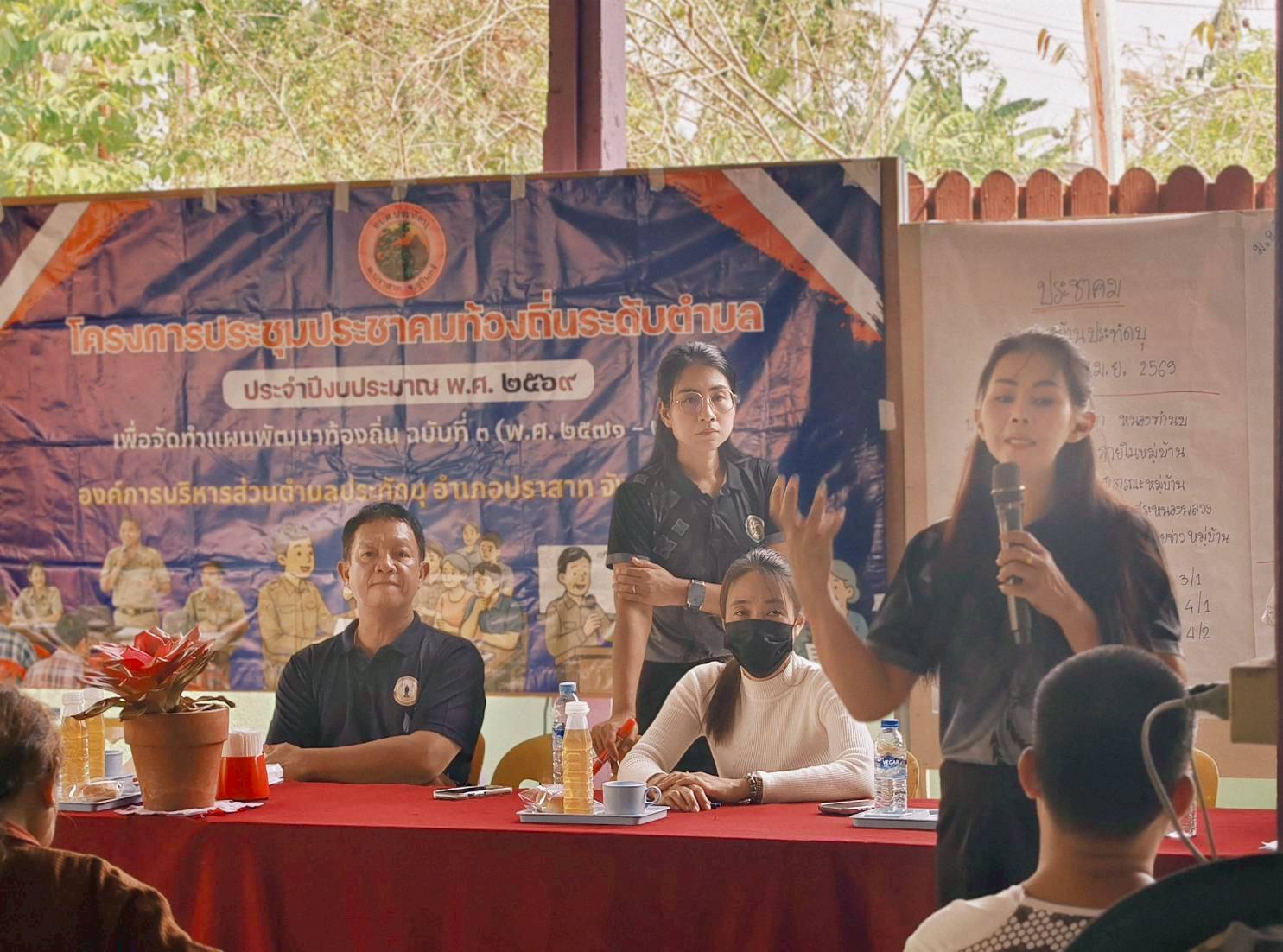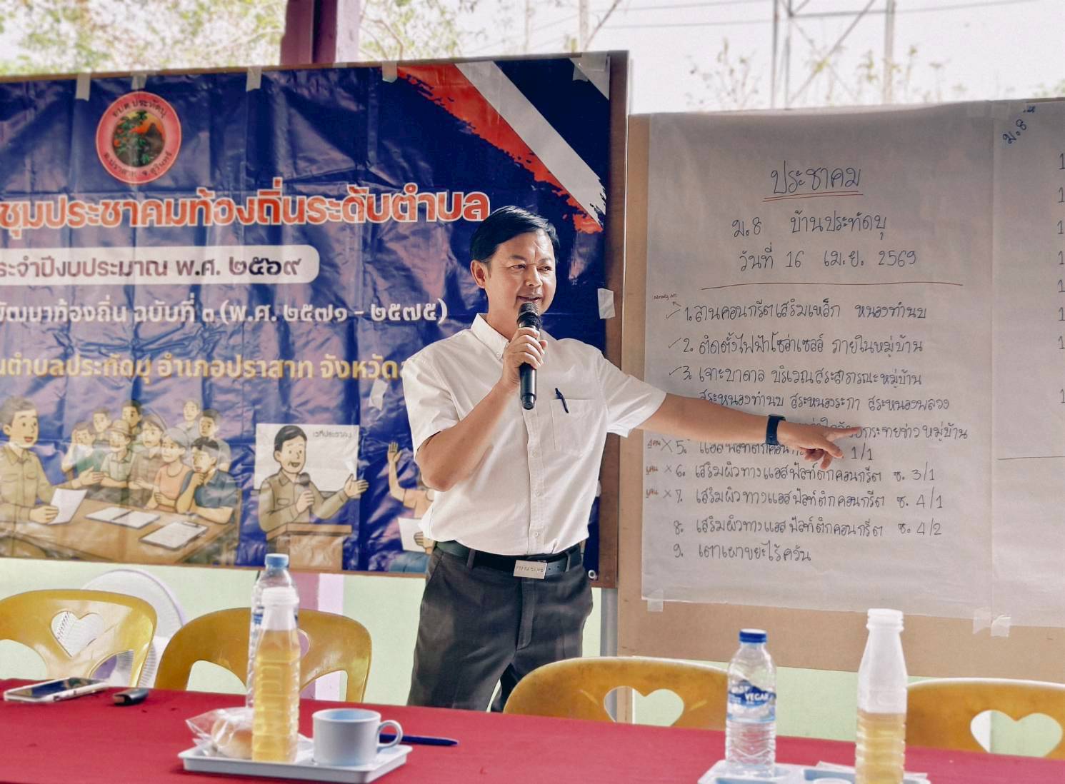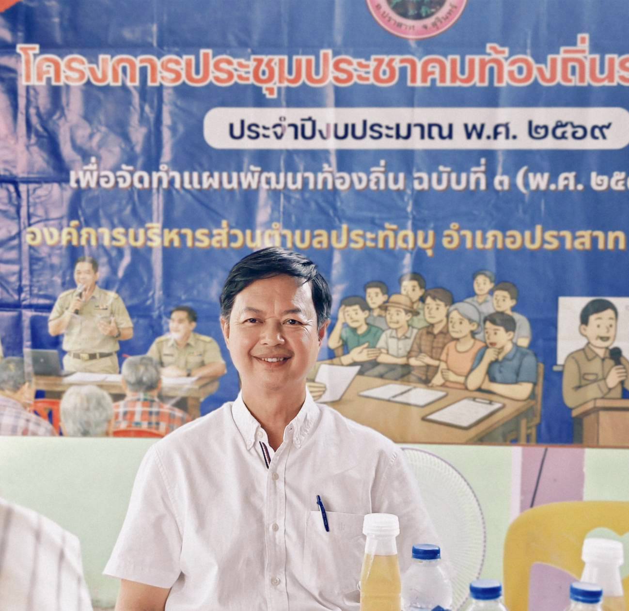 นายพันธ์เทพ ฐานุพงศ์ชรัช นายกองค์การบริหารส่วนตำบลประทัดบุ พร้อมด้วยคณะผู้บริหาร หัวหน้าส่วนราชการ และเจ้าหน้าที่ที่เกี่ยวข้อง ออกประชุมประชาคม เพื่อจัดทำแผนพัฒนาท้องถิ่น ฉบับที่ 3 (พ.ศ.2571-2575) ณ บ้านประทัดบุ อำเภอปราสาท จังหวัดสุรินทร์