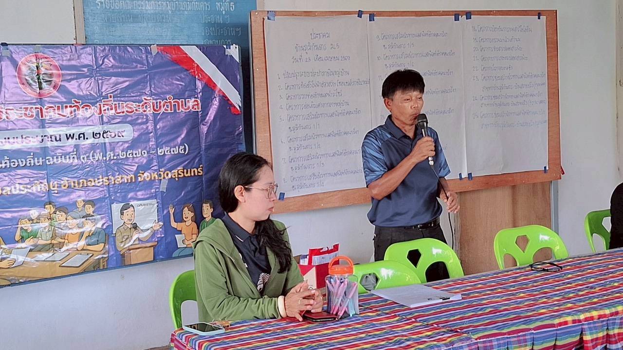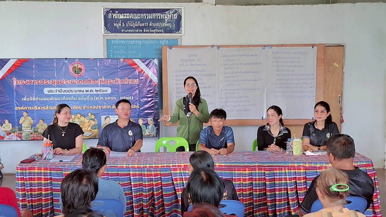 นายพันธ์เทพ ฐานุพงศ์ชรัช นายกองค์การบริหารส่วนตำบลประทัดบุ พร้อมด้วยคณะผู้บริหาร หัวหน้าส่วนราชการ และเจ้าหน้าที่ที่เกี่ยวข้อง ออกประชุมประชาคม เพื่อจัดทำแผนพัฒนาท้องถิ่น ฉบับที่ 3 (พ.ศ.2571-2575) ณ บ้านภูมันดาร หมู่ที่ 5 อำเภอปราสาท จังหวัดสุรินทร์